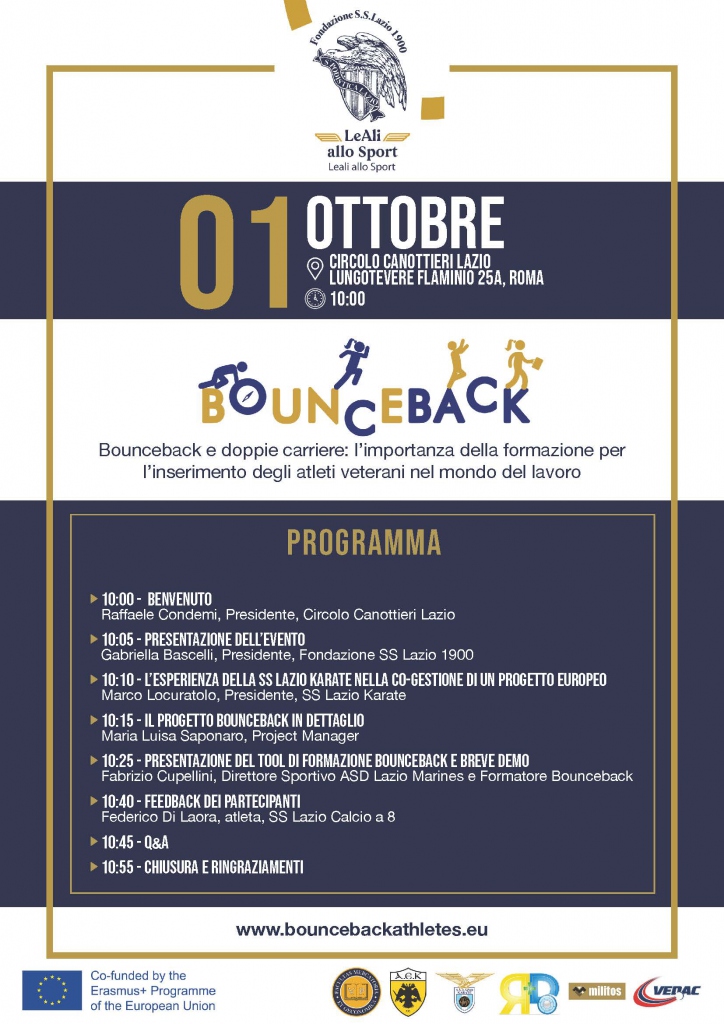 « Tutti gli Eventi Questo evento è passato. Chiusura Progetto BOUNCEBACK 1 Ottobre 2022 @ 10:00 – 21:00 Chiusura Progetto BOUNCEBACK Dettagli Data: 1 Ottobre 2022 Ora: 10:00 – 21:00 Sito web: www.sslaziokarate.it Organizzatore Scuola S.S. LAZIO KARATE Numero di telefono 3452391500 Email segreteria@sslaziokarate.it Sito web Visualizza il sito dell'Organizzatore Circolo Canottieri Lazio Lungotevere Flaminio 25A Roma, Italia + Google Maps Visualizza il sito del Luogo Salva nel tuo calendario Google Calendar iCalendar Outlook 365 Outlook Live